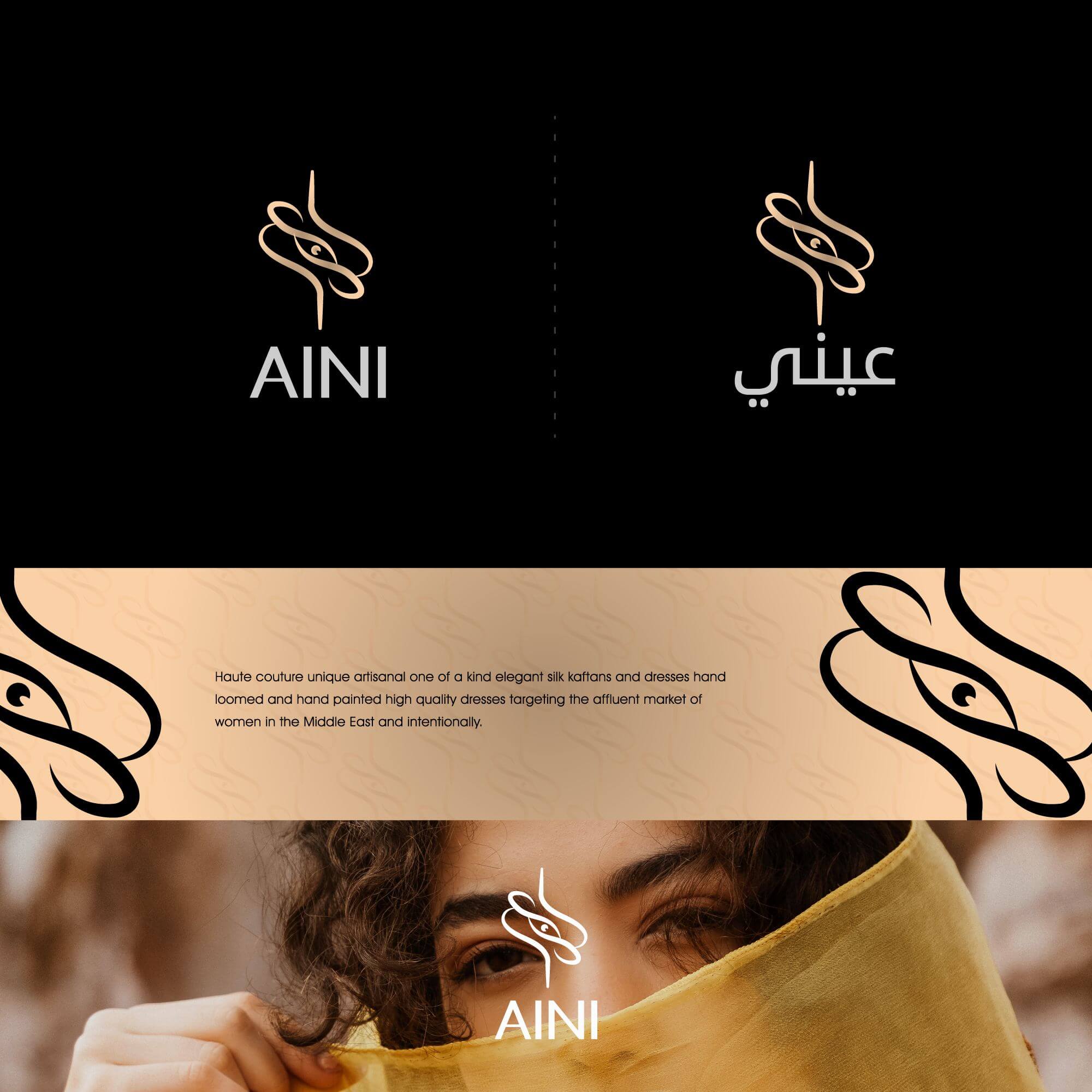 A luxury Arabic fashion logo blending elegant calligraphy with a delicate eye motif. Designed for a haute couture brand targeting affluent women in the Middle East, the gold and black identity exudes exclusivity and artisanal craftsmanship.
