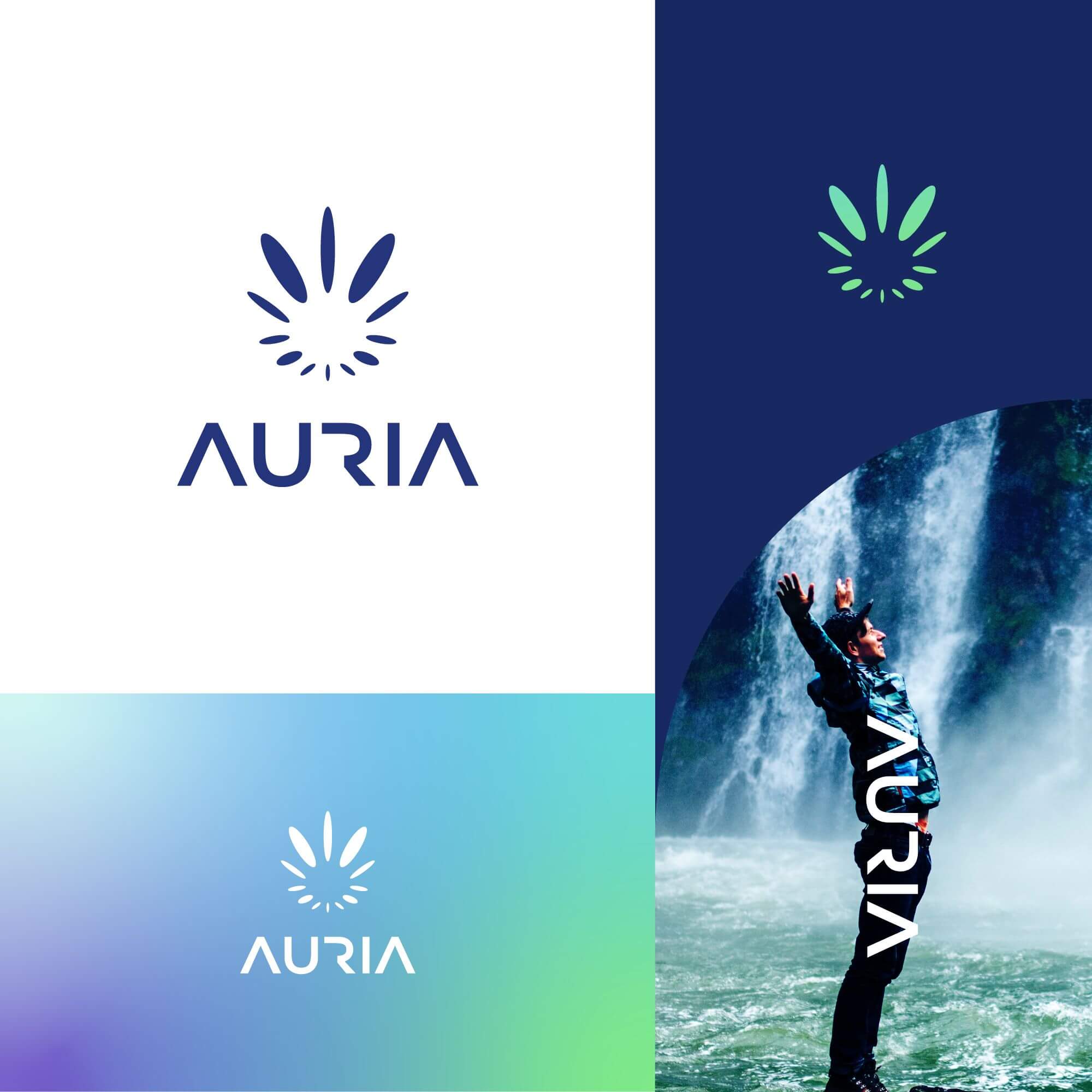 A fresh and vibrant brand identity for a wellness company. The radiant sunburst icon symbolizes energy, nature, and vitality, applied across multiple color systems including gradient and deep navy backgrounds.