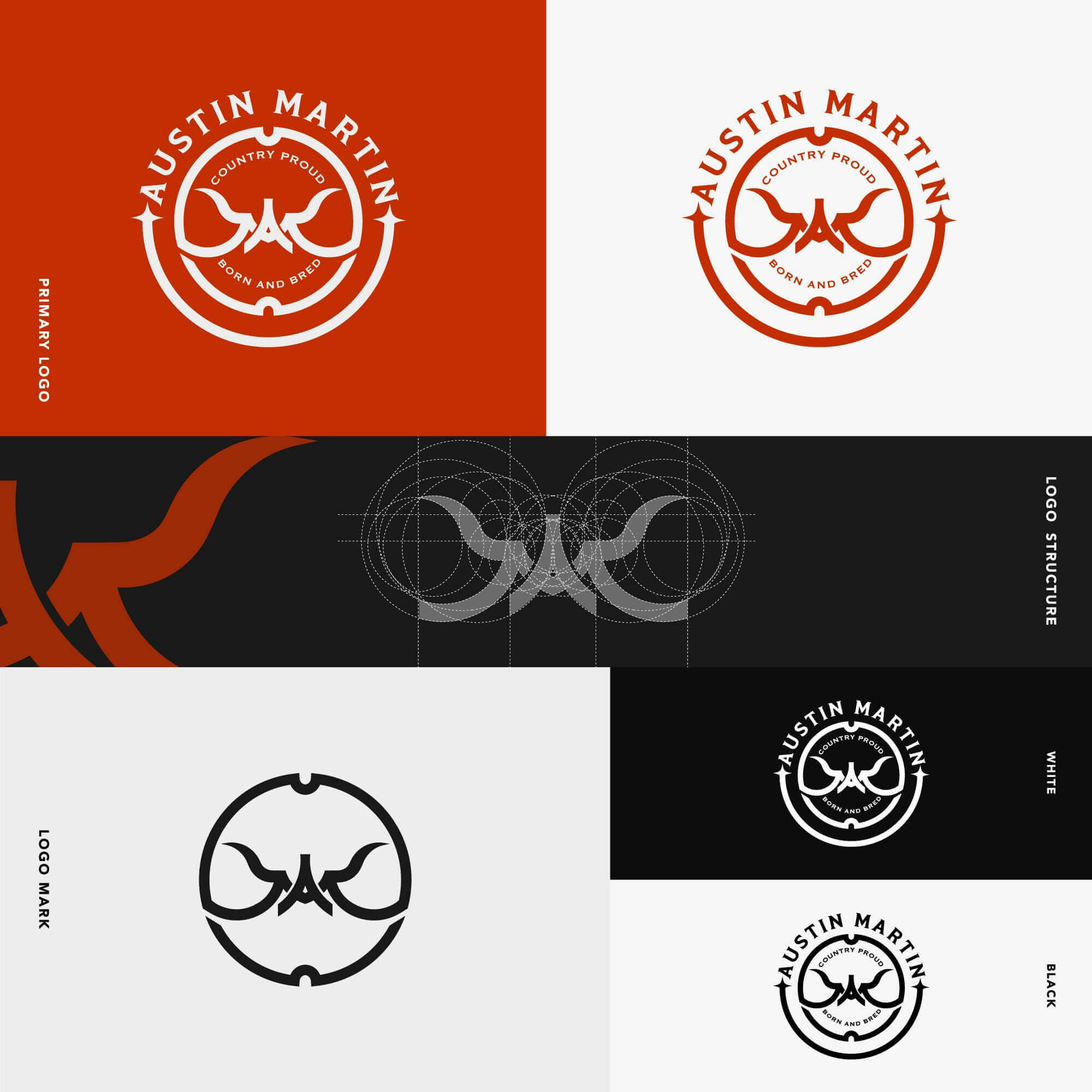 A bold country-style badge logo built around a longhorn emblem. Designed with circular typography and intricate golden ratio geometry, capturing an authentic Country Proud, Born and Bred identity.