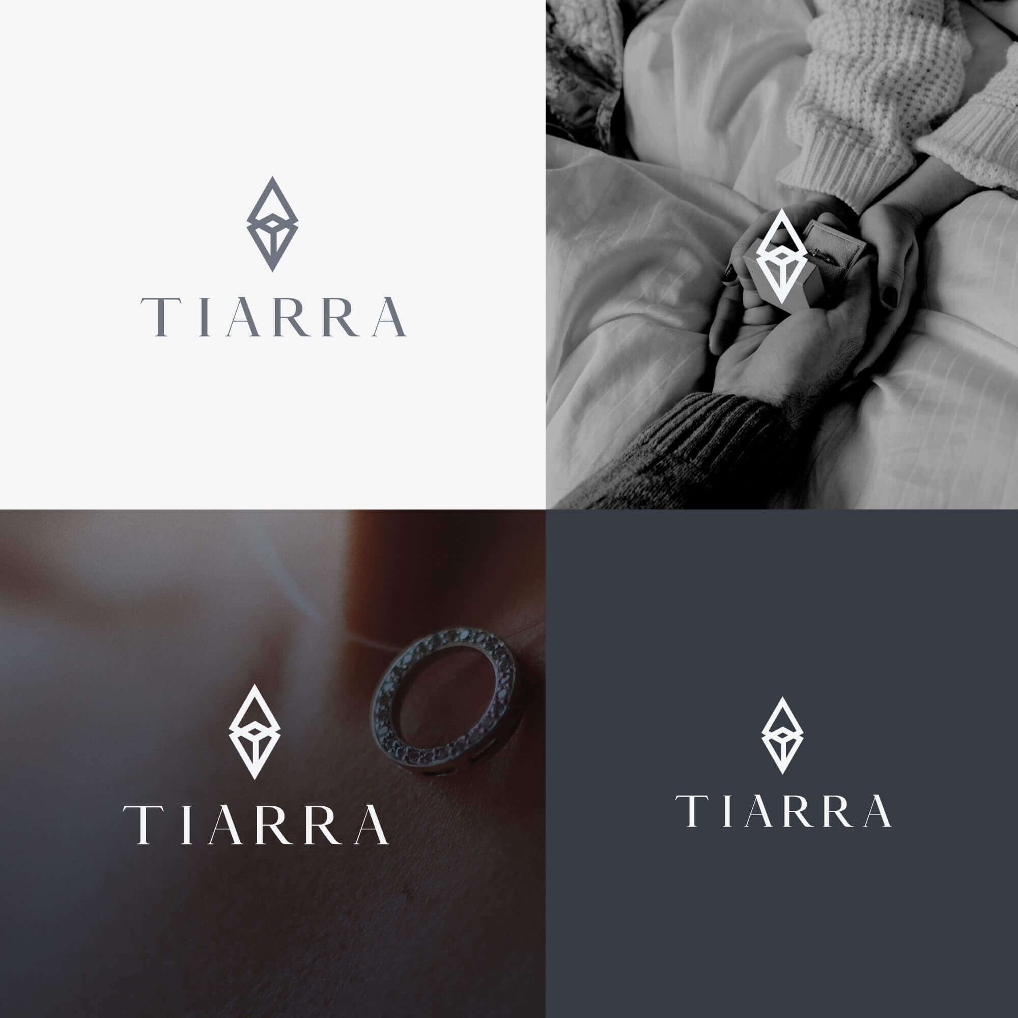 An elegant minimalist logo for a luxury jewelry brand. The geometric diamond mark reflects precision and refinement, applied consistently across light and dark backgrounds to create a timeless and sophisticated brand identity.