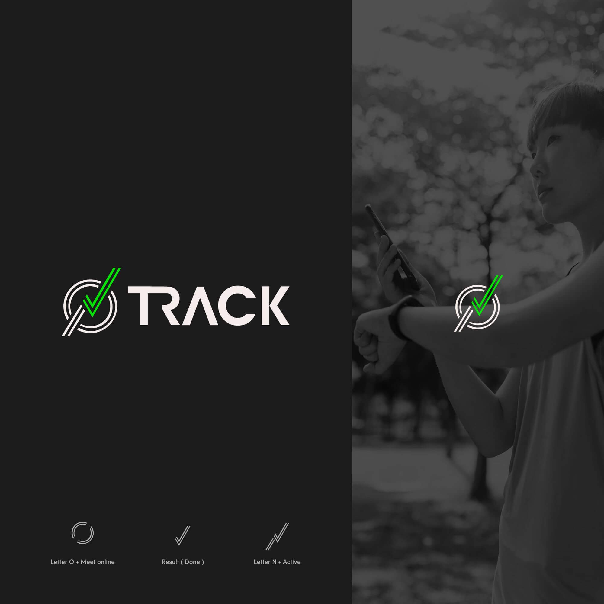 A clean and dynamic logo for a fitness tracking app. The circular motion icon combines the letter O, a checkmark, and movement lines to communicate progress, achievement, and an active lifestyle.